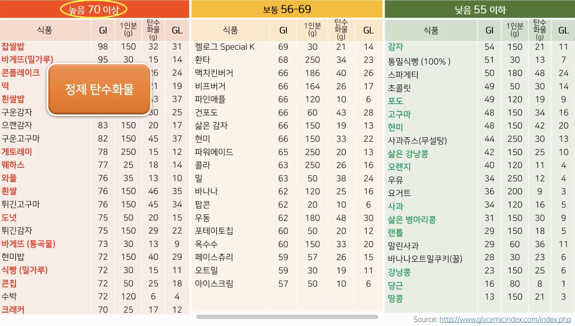 혈당지수가 "더 높은" 정제 탄수화물이 된다구요