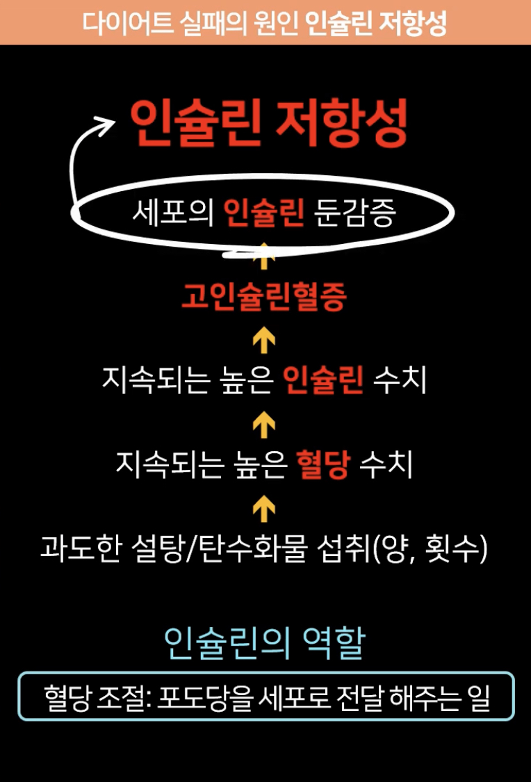 결국엔 세포가 인슐린에 반응을 안하게 되는 상황까지 가게 된거죠.