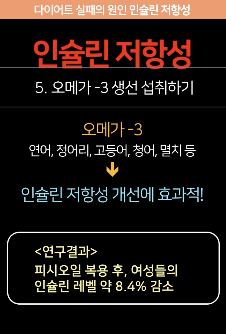 기름진 생선을 먹으면 인슐린 개선에 도움이 된다고 합니다.
