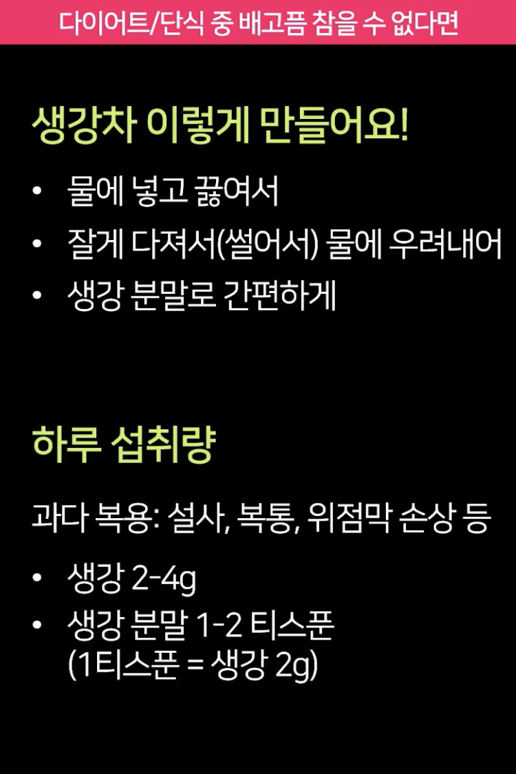 다행히도 생강은 단식 중에 먹어도 단식을 깨지 않는다고 해요.