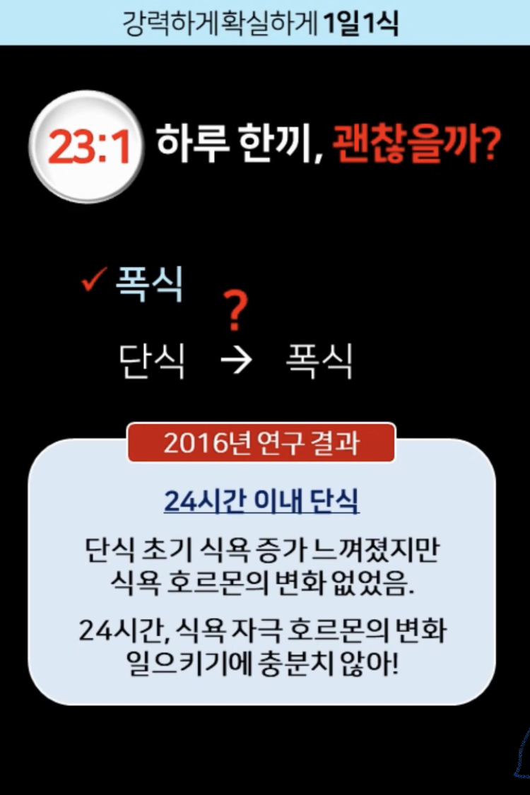 24시간 이하의 단식은 식욕호르몬 변화를 이끌어내기에는 충분한 시간이 아니라는 거죠.
