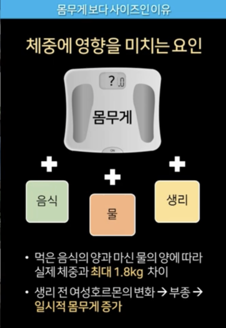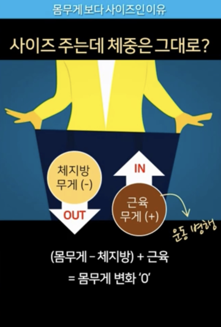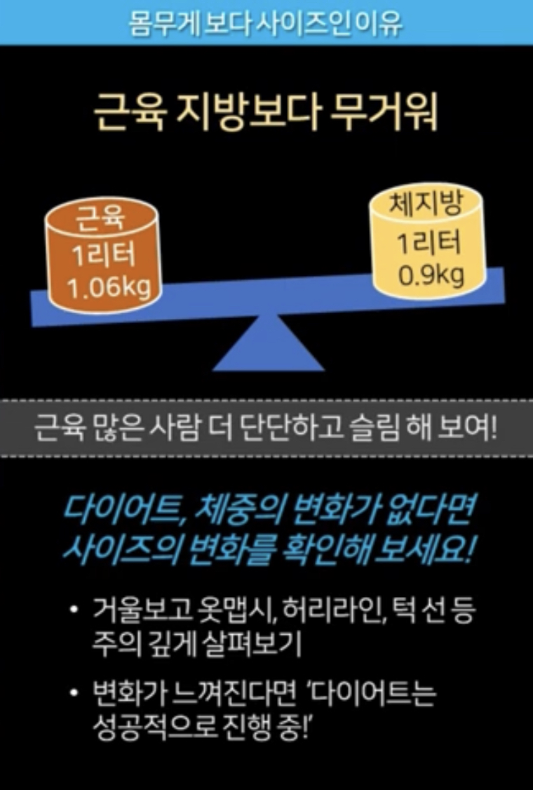 몸무게보다는 내 몸 사이즈 변화에 집중을 하셔야 하는거죠.