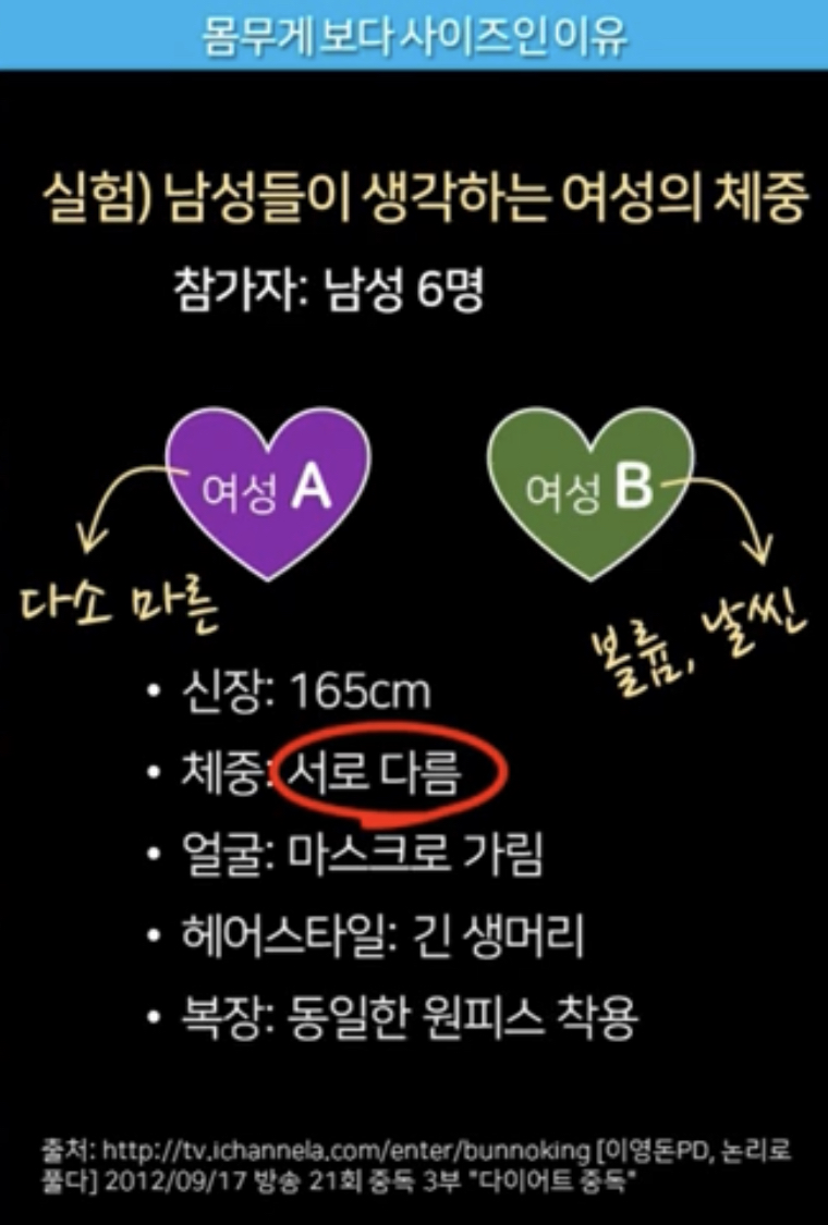 나중에 이 두 여성의 몸무게를 알고는