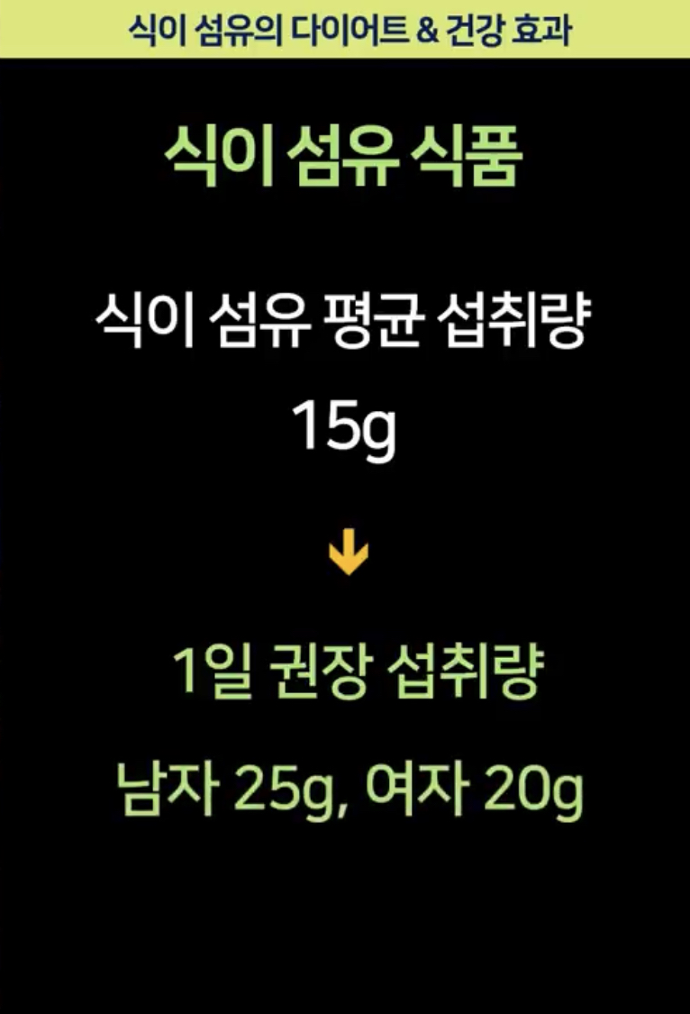 우리나라 식이섬유 평균 섭취량은 15g으로