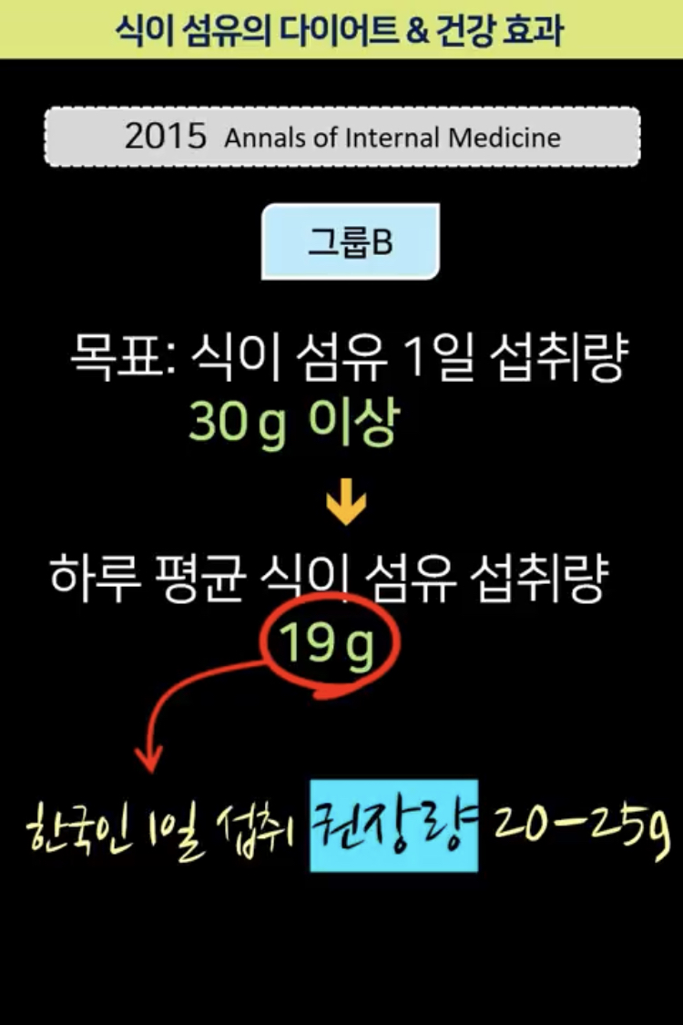 평균 식이섬유의 섭취량은 19g 정도였다고 해요.