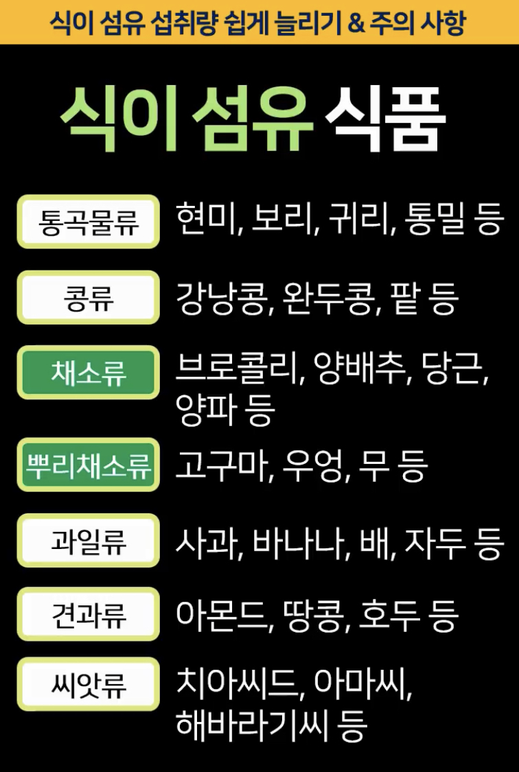 식이섬유가 많은 식품의 섭취를 늘리더라도,